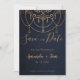Casamento de Design tradicional texturizado azul legante Salve a data. Dourado design tradicional num fundo texturizado azul, este casamento Salvar a data dá uma primeira impressão de excelente. Mande essas cartas para a família e amigos para anunciar o grande dia. Coestomize-o mudando os nomes da noiva e noiva e a data do casamento. Para mais personalizações, contacte-me em mypaperlove2021@gmail.com