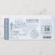Este cartão de embarque salva o cartão de data é uma maneira criativa de anunciar seu próximo casamento. Este design mimetiza um cartão de embarque de avião e inclui detalhes como a data do casamento e a localização em um estilo único. Os cartões salve a data de passagem são uma maneira divertida e única de dar o tom para o tema do seu viagem ou casamento de destino e deixar seus convidados animados para o que virá.