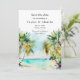 Esta elegante e bela aquarela, exceto a data do convite, apresenta uma praia, céu azul e palmeiras. O texto combina o script manuscrito e as fontes sans serif para uma aparência na moda e moderna. Isto é perfeito para uma praia de verão ou um casamento de destino tropical.