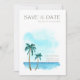 Cartões de aviso de salvamento com design de palmeira em aquarela para o seu casamento de destino na praia na Flórida ou em qualquer outro local tropical ou costeiro. Personalize a frente com detalhes do casamento e adicione uma foto no verso.