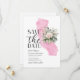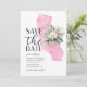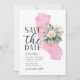 Elegante casamento de destino na Califórnia salvar a data com uma ilustração do estado floral rosa.