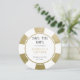 Deixe seus amigos e familiares saberem a data do seu casamento. Este divertido cartão de salvar a data no design de uma ficha de pôquer será um grande sucesso com seus amigos e familiares. Adicione seus detalhes para um casamento de destino em Las Vegas ou em outro local com estilo de cassino. Em ouro falso e branco.