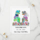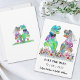 Delicie seus convidados de casamento com este convite de casamento temático de dinossauro colorido e engraçado para salvar a data com noiva e noivo T-Rex em pé em um prado de flores silvestres colorido. Fácil de personalizar com os nomes da noiva e do noivo e a data do casamento. Ilustrações engraçadas da noiva e do noivo T-Rex com tipografia caprichosa moderna. Arte original única da artista Catherine Sweetman