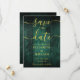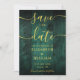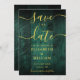 Este elegante cartão de casamento "salve-a-data" do salão verde-esmeralda de madeira boho pode ser personalizado com as suas informações em tipografia de ouro-chico. Projetado por Thisnotme©