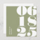 Casamento mínimo moderno Salve o convite de data com sua data de casamento em uma grande tipografia em negrito, nomes de cônjuge na frente e texto mínimo no verso. A cor predefinida é um verde fraco. Elementos de texto totalmente personalizáveis e você pode alterar todas as cores se quiser - use a ferramenta design para fazer as alterações que desejar.
