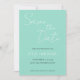 Convites de casamento de estilo simples para salvar a data, que apresentam letra estilizada branca em um fundo de cor espuma do mar na moda. Edite e substitua nomes, data e local com os seus. Selecione o tamanho do convite e o estilo do papel.