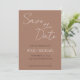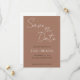 Simples estilo de convites para salvar a data que apresentam letras pretas e brancas em um fundo cor castanho mocha de tendência. Edite e substitua os nomes, a data e o local pelo seu próprio. Selecione o tamanho do convite e o estilo do papel.