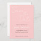 Convites de casamento de estilo simples que apresentam caligrafia estilizada preta em um fundo de cor rosa corado da moda. Edite e substitua nomes, data e local com os seus. Selecione o tamanho do convite e o estilo de papel.