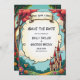 Este estilo elegante de conto de fadas, salvar o convite de data é perfeito para um casamento moderno. A design apresenta uma floresta antiga encantada, uma ilustração do castelo e uma caligrafia negra sobre um fundo temático no livro.