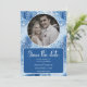 Abrace a magia de uma celebração de casamento no inverno. Elegante design mágico com padrão de gelo azul congelado, flocos de neve, fotografia quadrada e tipografia de tendências para ter um tema de Maravilha de inverno. O texto e a foto podem ser facilmente personalizados para um único design único para o seu dia especial.