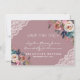 Design caprichoso com delicados buquês florais de aquarela em azul poeirento e rosa poeirento, um divisor floral, cantos de renda, sobre um fundo rosa poeirento: no verso, estão as iniciais dos noivos. Sendo um modelo, é fácil adicionar suas informações, alterar fontes e cores. Para itens correspondentes, visite minha Coleção de Flores Rosa Poeirento.