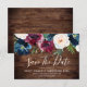 Casamento de Flores Bordeaux Vinho Tinto Madeira Rústica Azul Marinho Save the Date
