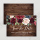 Casamento de Flores Borgoña de Vinho Tinto de Madeira Rústica Salve a Data