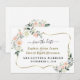 Design único e elegante com flores cor-de-rosa, flores de aquarela branca, moldura de ouro falso, caligrafia da moda; no verso moldura floral e iniciais. Use a ferramenta Personalizar para adicionar suas informações e fazer alterações. Para itens correspondentes, visite minha Coleção de Flores Brancas Blush.