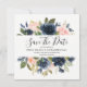 Reserve A Data Casamento de Flores de Aquarela Rosa e Azul Marinh