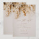 Um convite de casamento de outono romântico e moderno com foto realista, apresentando um buquê floral seco neutro em tons de trigo, ocre e ferrugem. Clique para editar e personalizar este design.
