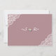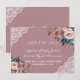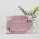Design caprichado com delicados buquês florais de aquarela em rosa poeira e azul poeira, um divisor floral, cantos de renda, em um fundo rosa poeira: no verso, estão as iniciais dos noivos. Por ser um modelo, é fácil adicionar suas informações, alterar fontes e cores. Para itens correspondentes, visite minha Coleção de Flores Rosa Poeira.