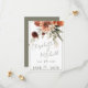 Este design de cartão de aviso de data de casamento moderno, mas rústico, apresenta um buquê superior de flores cor de rosa pêssego, ferrugem, terracota, marrom e branco. O fundo é branco com uma moldura fina de verde sálvia; a parte de trás é um verde sálvia suave. Este design faz parte do conjunto de cartões Casamento de Flores Rústicas Terracota da Simply Farmhouse Press.