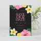 O Casamento de Flores Tropicais em Aquarela Exótica Salve a Data apresenta um design cativante com flores tropicais vibrantes em aquarela, perfeito para anunciar seu dia especial com um toque de beleza exótica e elegância tropical.
