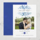 Convite de casamento de folhagem azul-marinho e branco para salvar a data, projetado para ser personalizado rápida e facilmente de acordo com os detalhes do seu evento.