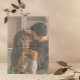 Envie seus anúncios de noivado com estilo com este elegante Save the Date de casamento preto e branco, apresentando uma camada de textura de vélin falso sobre sua foto de noivado de cor clara. O verso do convite apresenta uma textura popular de aquarela preta e branca e um código QR que leva ao site do seu casamento. Projetado com convites de casamento para combinar. Certifique-se de seguir nossa loja se você gosta deste design! NOTA DO CRIADOR: A "sobreposição de vélin" neste produto é um efeito digital. Copyright Anastasia Surridge para Anastasia Designs, todos os direitos reservados.