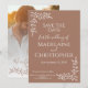 Uma romântica simples, mas elegante design de folhas e bagas de linha de arte, a cor do ano, mocha mousse. Um tom castanho aconchegante de sofisticação e beleza terrestre refinada. Ideal para uma atmosfera de casamento quente e elegante, que combina bem com verdes e pinks. elegância clássica na frente com uma mistura leve de fontes brancas brancas e letras fortes em negrito. Na parte de trás, a design de folhas e bagas continua onde você pode adicionar sua foto mágica favorita e onde você pode manter o texto que está lá ou você pode adicionar seu próprio e, claro, a data do casamento. Um lembrete perfeito da data mágica que virá. Se precisar de ajuda para fazer deste item, por favor, envie-me um e-mail em designsbykatz@gmail.com e eu gostaria de ajudar. Parabéns no seu grande dia.