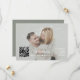 Design de cartão elegante com uma ou duas das suas belas fotos, código QR para que os convidados respondam e encontrem todos os detalhes online, caligrafia moderna em fundo verde sage. Use a ferramenta Personalizar para adicionar suas informações e substituir as fotos pelas suas. Itens correspondentes podem ser encontrados na minha Coleção Boho Verde Sage.