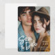 Convites de Casamento de Foto com Letra Moderna à Pincel para Salvar a Data