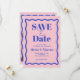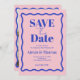 Casamento de Foto com Ondulação Azul e Rosa Retro Save the Date