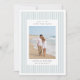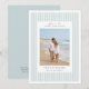 Anuncie seu casamento próximo com esses elegantes cartões de save the date da Redwood and Vine Design Co, apresentando uma foto vertical contra um fundo clássico de pinstripe em verde marinho costeiro suave e branco crocante. Personalize o verso com texto adicional e um código QR personalizado que leva ao site do seu casamento para mais informações.
