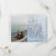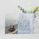 O design apresenta um script moderno e fino de Save The Date com letras brancas fluídas, e sua incrível foto contra um fundo texturizado de aquarela azul céu. Fácil de personalizar com informações importantes à sua escolha. Complementará qualquer casamento com tema moderno em qualquer estação do ano.