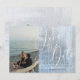 O design apresenta um script Save The Date moderno e fino em branco fluído, e sua foto incrível contra um fundo texturizado de aquarela azul céu. É fácil personalizar com informações importantes de sua escolha. Irá complementar qualquer casamento com tema moderno em qualquer época do ano.