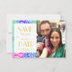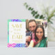 Casamento de Boho Colorido Salve a Data em Roxo e Ultra Violeta A tipografia está em uma fonte moderna para completar o sentimento de 'Boho' e um sentimento indiano Todo o texto é facilmente alterado para adicionar sua própria informação. Adicione sua própria foto. O reverso também apresenta um design multicolor.