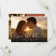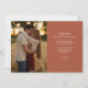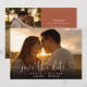 Este cartão de salvar a data de casamento com letra de coração elegante apresenta sua foto e uma legenda de salvar a data acima dos seus nomes, data e local. O verso apresenta uma foto e mensagem adicionais em um fundo de terracota. Concebido por Thisisnotme