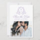 Crie um anúncio memorável para seu dia especial com esta lavanda elegante salve o cartão de data. O design frontal apresenta as suas iniciais de monograma personalizadas, rodeadas por uma delicada crista floral lavanda sobre fundo branco. Seus nomes são mostrados em uma caligrafia de lavanda graciosa, com sua data de casamento e sua localização elegantemente colocados abaixo. Uma foto horizontal de noivado adiciona um toque pessoal ao design. Na parte traseira da carta, uma foto de noivado vertical é apresentada, juntamente com um conveniente código QR para os convidados, para acessar facilmente o site do seu casamento e quaisquer instruções personalizadas.