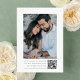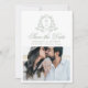 Anuncie seu casamento com charme de eterno usando esta foto verde sábio, salve o cartão de data. A frente mostra suas iniciais de monograma personalizadas moldadas por uma crista floral verde sábio em um fundo branco. Seus nomes são exibidos em elegante caligrafia verde, com sua data de casamento e sua localização abaixo. Uma foto horizontal de noivado adiciona um toque pessoal e sincero. No verso, uma foto vertical do noivado é apresentada com um código QR abaixo, fazer fácil para os convidados digitalizarem e acessarem o seu site de casamento e instruções personalizadas. Uma bela escolha para as celebrações de casamento românticas, inspiradas na natureza.