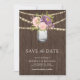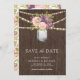 Reserve A Data Casamento de Foto de Mason Jar Floral Rosa Púrpura