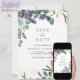 Invistam seus convidados com este elegante, salve a data com lindas flores de lavanda e folhas de eucalipto com o Código QR para o site de casamento. Basta adicionar os detalhes do seu evento neste modelo fácil de usar e enfeitar este cartão com suas fotos favoritas para torná-lo um único personalizado, salve o cartão de data.