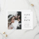 Cartão de casamento personalizado com data de reserva com layout moderno e simples com tipografia elegante.