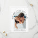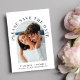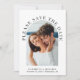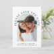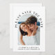 Casamento moderno salve o cartão de data com sua foto em um quadro de arco cercado por "Por favor, salve a data" em texto elegante. Sob sua foto, adicione seus nomes, data do casamento e local. No lado oposto, personalize o salvamento dos detalhes da data em uma simples tipografia.