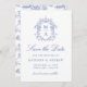 Anuncie seu próximo casamento para amigos e família com esta Elegante foto Floral Victoriana da Chinoiserie Azul, salve a data. Esta design exibe suas iniciais monográficas cercadas por uma crista de intricada chinoiserie azul e motivos barrocos. "Salvar a data" aparece em um roteiro de caligrafia azul com os detalhes do casamento mostrados abaixo. A parte traseira da placa apresenta sua foto vertical do noivado com um plano de fundo floral azul inspirado pela Chinoiserie.