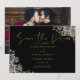 Este cartão de save-the-date de casamento floral gótico preto e dourado pode ser personalizado com suas informações em tipografia sofisticada com sua foto especial no verso. Projetado por Thisisnotme©