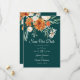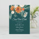 Salve a data do casamento de outono floral terracota azul-escuro. Casamento de outono encantador e elegante com flores em aquarela e tipografia elegante com foto no verso do cartão emoldurado com folhagens e flores.
