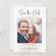 Anuncie seu casamento em estilo eterno com este elegante guarde o cartão. Apresentando uma frente de fotos com um roteiro moderno e um rosa de pincel suave no verso, este design combina romance com sofisticação. Perfeito para casais que querem uma maneira simples e bonita de compartilhar sua data de casamento com os entes queridos.