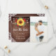 Os cartões de aviso de data de casamento apresentam um design floral de girassol de aquarela rústica e rosas vermelhas com luzes de corda, renda e fundo de madeira. Eles fazem parte de uma coleção que inclui uma gama completa de convites de casamento e papelaria correspondentes. Personalize-os com seu próprio texto e foto. Por favor, visite nossa loja para ver a gama completa de itens que você pode personalizar para o seu casamento.