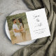 Este anúncio de Casamento de Foto Minimalista Simples para salvar a data apresenta um texto manuscrito branco para salvar a data, detalhes de texto personalizáveis mínimos e foto na frente. O verso tem espaço para uma foto adicional e detalhes como um site de casamento. Clique no botão de edição para personalizar este design para atender às suas necessidades.