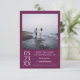 Isto salva o cartão de data é moderno, minimalista e simples, mas elegante. Ele apresenta uma foto quadrada em um fundo cor de roxo, magenta ou berry com sua data de casamento expressa artificialmente em números verticais. Excelente maneira de deixar seus amigos e família saberem marcar seus calendários para seu próximo casamento.