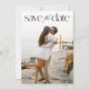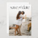 Convite de casamento simples com 2 fotos com data de reserva com tipografia minimalista moderna em preto e branco
