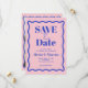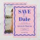 Casamento de Foto Ondulada Azul e Rosa Retro Salve a Data