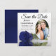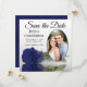 Estas belas cartões salve a data são a maneira perfeita de deixar seus amigos e família saberem sobre seu próximo casamento. Eles apresentam um design floral que é moderno e elegante, com um rosa azul marinho, de solteiro longo, que reflete numa piscina de água com ondas e ondulações com a sua foto em forma oval, sobre um fundo branco clássico. A legenda: Salvar a data com espaço para seus nomes, data e local. O dorso é uma cor azul escura marmoreada.